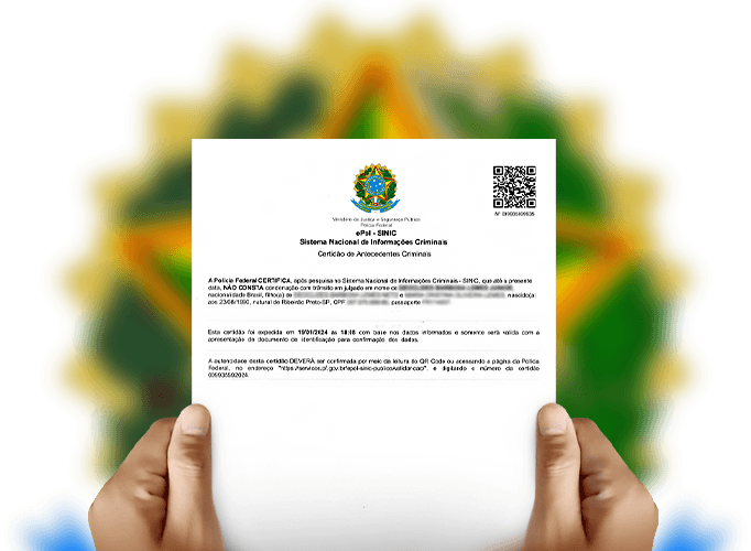 Realizamos a emissão do seu certificado de antecedentes criminais diretamente no Brasil e cuidamos de todo o envio para o exterior. Garantimos um processo ágil e seguro, ideal para atender às suas demandas legais, seja para imigração, trabalho ou outras necessidades específicas.
